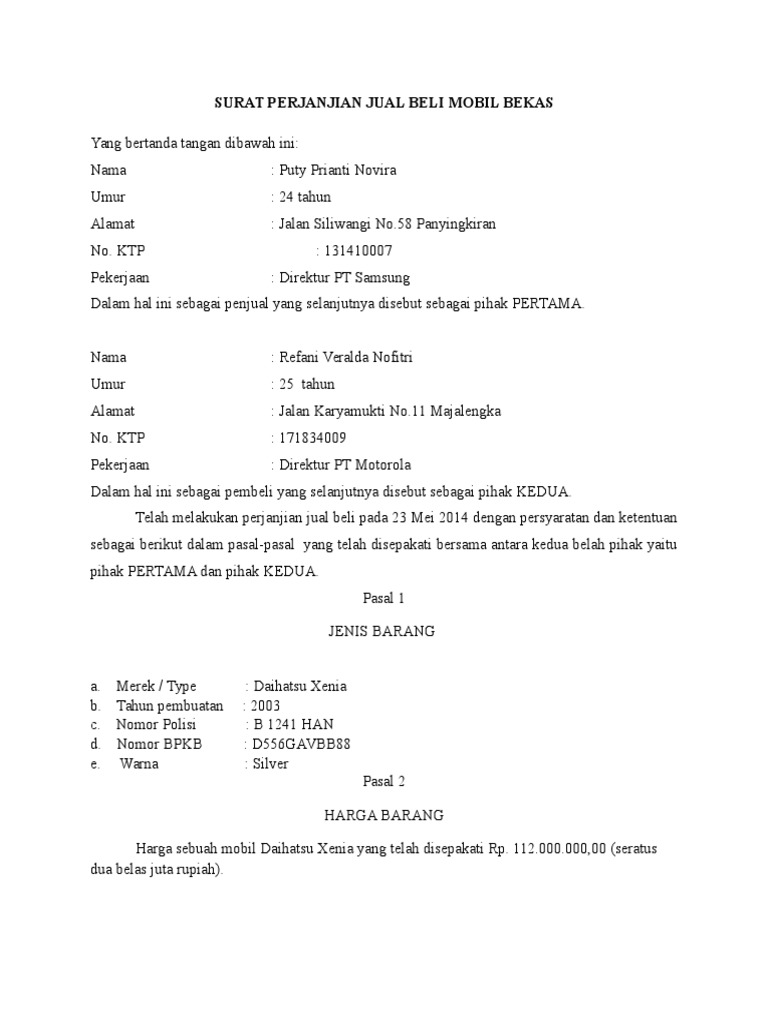 Jika anda membeli kendaraan bekas dari penjual pribadi, penjual dapat meminta anda untuk menandatangani tagihan penjualan, yang merupakan bentuk persetujuan pembelian mobil yang sangat disederhanakan. Sebelum membuat surat kuasa, ada baiknya ketahui contoh surat kuasa yang baik dan benar terlebih dahulu. Surat kuasa pengambilan bpkb tersebut nantinya akan digunakan sebagai bukti bahwa bpkb sudah diambil oleh orang yang dikuasakan. Contoh surat perjanjian jual beli mobil. Yang telah bertanda tangan di bawah ini, nama :